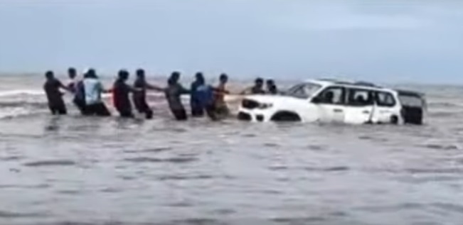 નાલાસોપારાના કલમ્બ બીચ પર કાર ચલાવીને સ્ટંટ કરનાર એક પ્રવાસીનો ભારે પડ્યુ છે.છે. સદનસીબે, આમાં કોઈનું મોત થયું નથી. ભરતીના પાણીમાં તરતી કાર અને સ્થાનિક લોકો દોરડાની મદદથી કારને બચાવવાનો પ્રયાસ કરી રહ્યા હોવાનો એક વીડિયો સોશિયલ મીડિયા પર વાયરલ થયો છે.