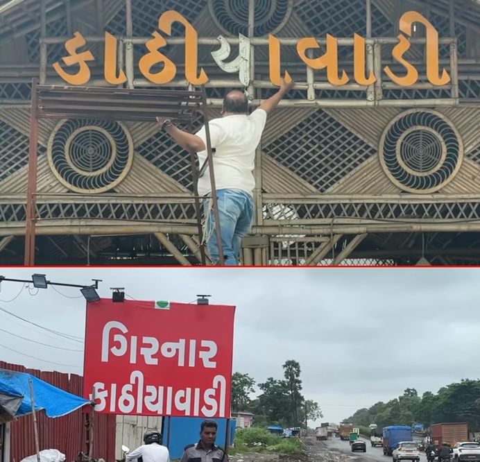 મુંબઈ-અમદાવાદ રાષ્ટ્રીય ધોરીમાર્ગના પાલઘર જિલ્લાના ઢેકલેથી અછાડ સુધીના ૭૦ કિમીના પટમાં આવેલી ઘણી હોટલો અને ઢાબાઓના આગળના ભાગ પર મરાઠી દેવનાગરી લિપિમાં નામપટ્ટીઓ નથી. કેટલીક હોટલોના નામપટ્ટીઓ પર અંગ્રેજી, હિન્દી અને ગુજરાતી લિપિઓ બોલ્ડ અક્ષરોમાં લખેલી છે, જ્યારે મરાઠી લિપિ ખૂબ નાના અક્ષરોમાં લખેલી છે. એવું જોવા મળે છે કે હાઇવે પર આવેલા સતીવલી, કુડે હાલોલી, દુર્વેસ, મસ્તાન નાકા, તકવાલ, નંદગાંવ, અવધાની, ચિલ્હર ફાટા, વાડા ખડકોના, ચારોટી નાકા, આંબોલી, તલાસરી, સાવરોલી, અછાડ ગામોની હદમાં આવેલી હોટલોના નામ પ્લેટોમાં અંગ્રેજી અને હિન્દીની સાથે ગુજરાતીને પણ પ્રાધાન્ય આપવામાં આવ્યું છે અને મરાઠી દેવનાગરી લિપિનું સ્થાન નહિવત્ છે.